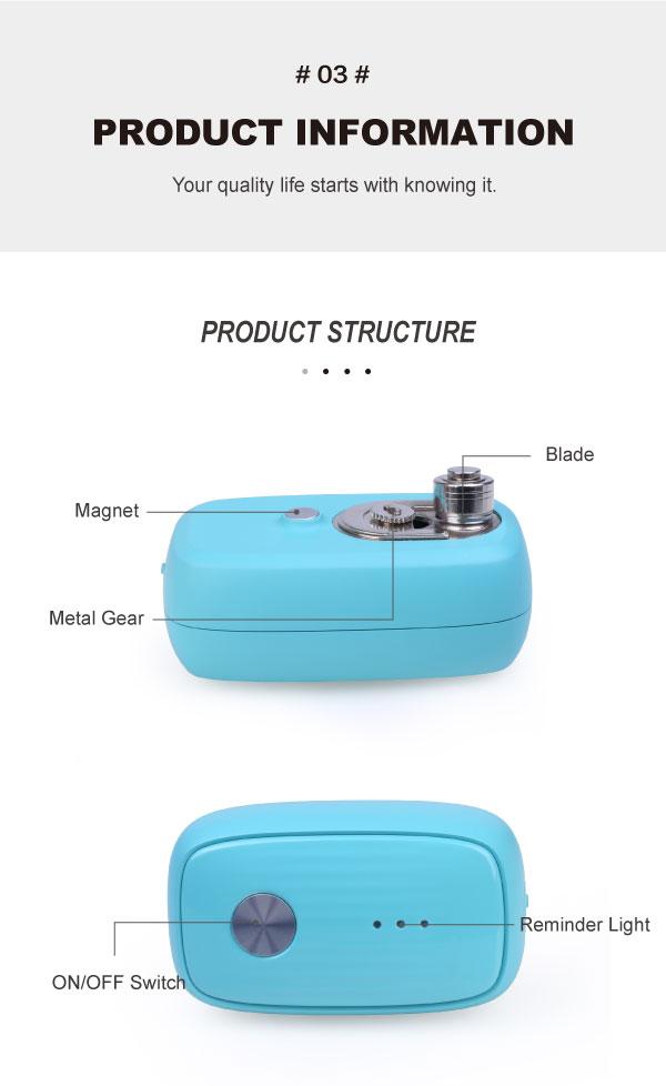 - Matériau : Plastique ABS + lame en acier inoxydable