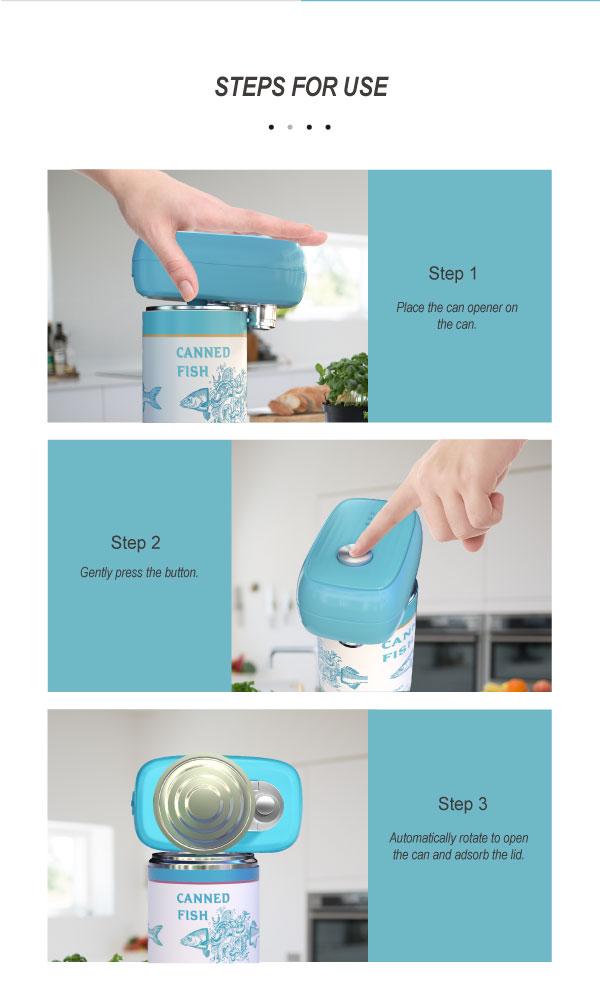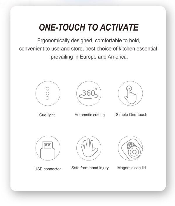 Conçu pour une utilisation mains libres, il ouvre vos conserves automatiquement, sans effort ni risque de coupure.