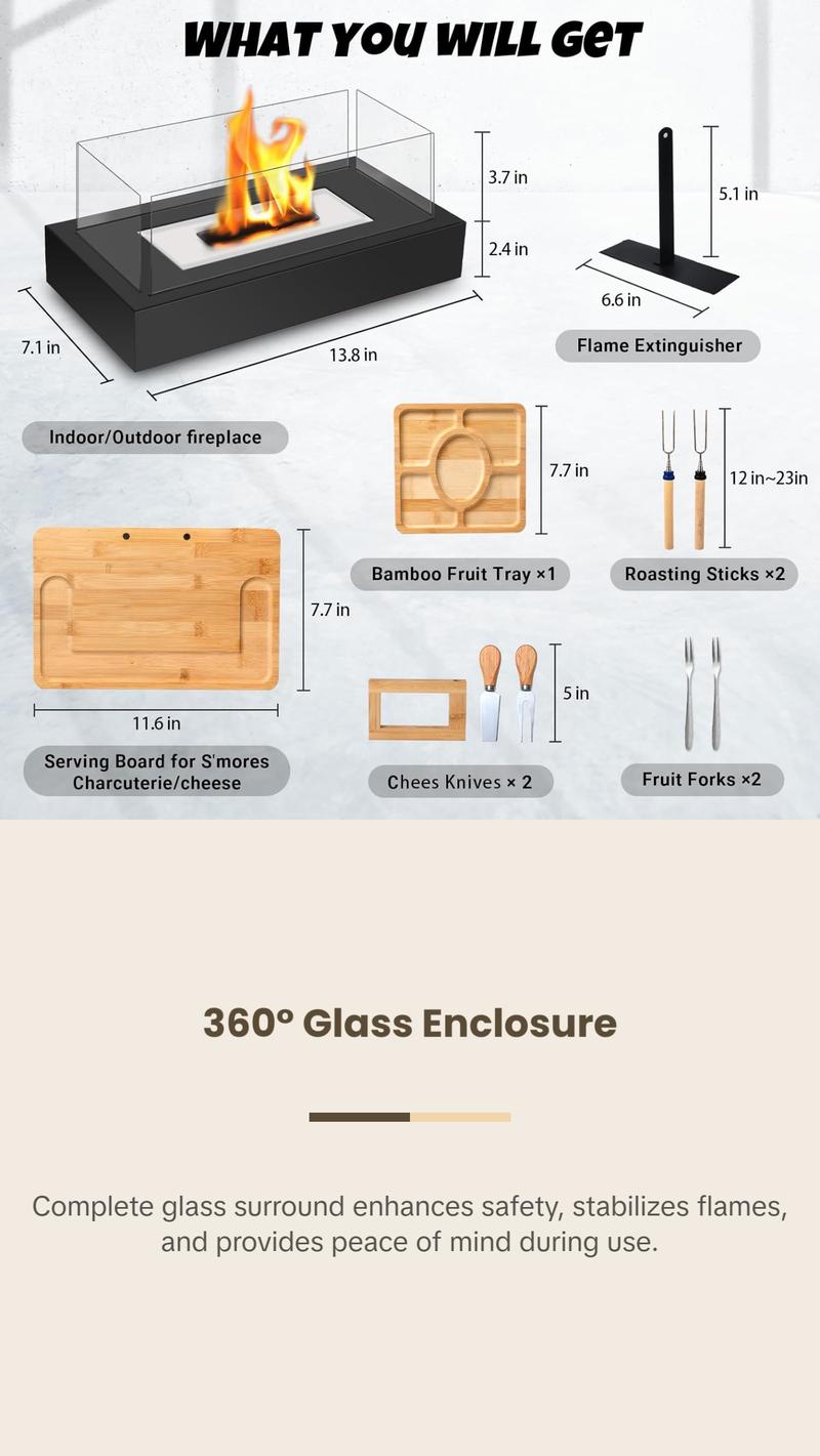 Livré avec 2 fourchettes à guimauves, 2 couteaux à fromage, 1 planche à charcuterie en bambou et 1 plateau à fruits — tout pour une expérience complète.